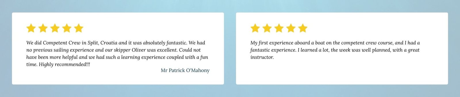 For our sailing courses, Greece and Croatia run as 6-day weeks. UK courses are 5-day, with popular weekend refreshers available.