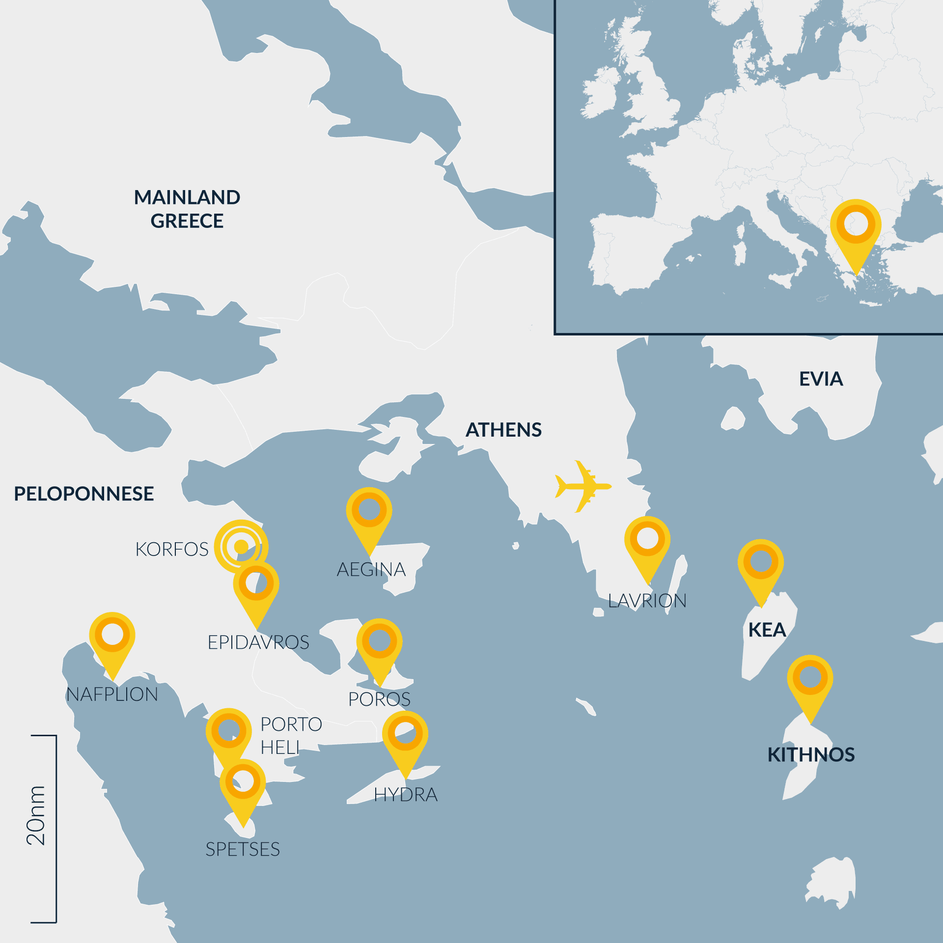 There are a multitude of ways to travel to our base on the Athens coast, whether you are joining us for the week or combining it with a larger trip. Embarkation is from 17:00 on a Saturday, sailing the following morning.