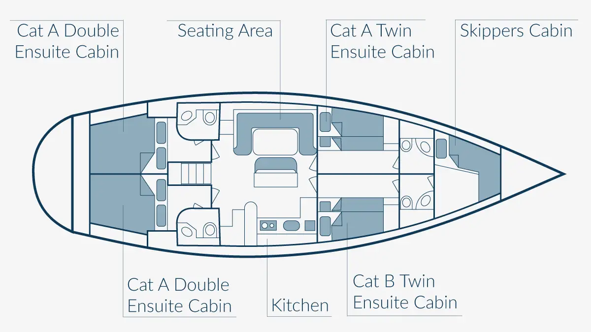 Our Ocean Star yachts are perfectly suited for training to sail a larger yacht. With their modern navigation and safety equipment, these licensed charter yachts provide a safe and comfortable journey. Offering two double and two twin guest cabins with en suite shower/wc, along with a separate crew cabin, they ensure ample accommodation.